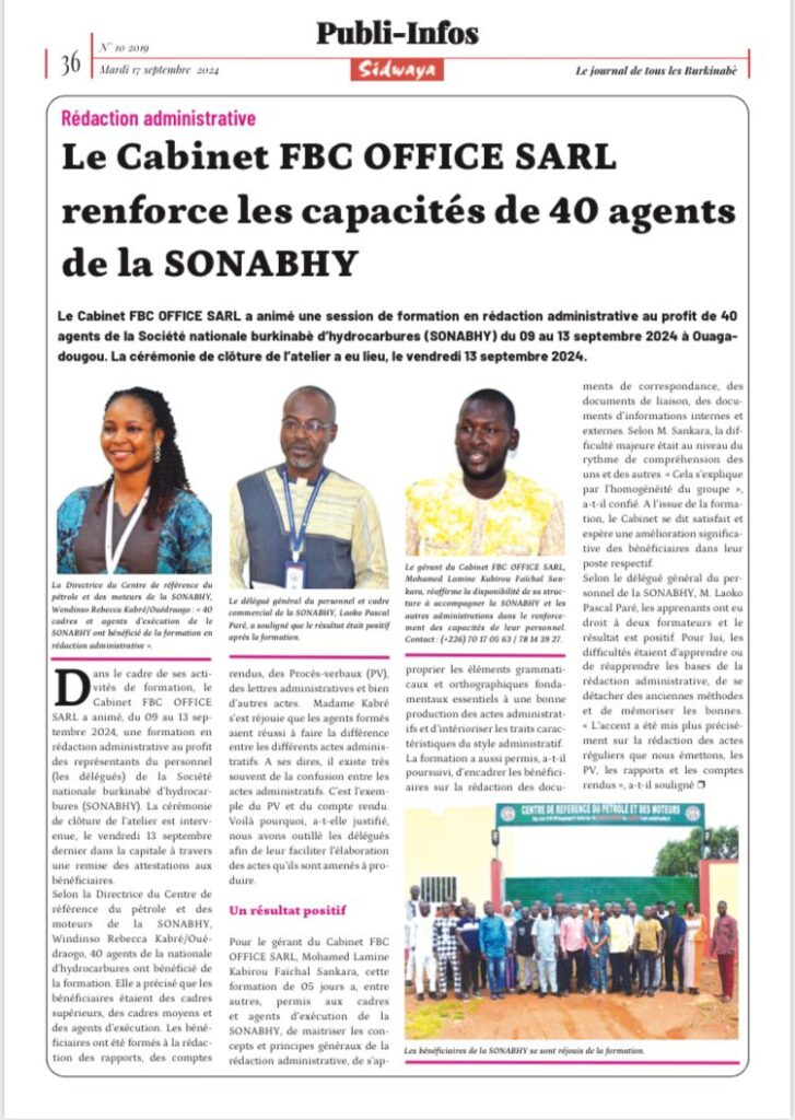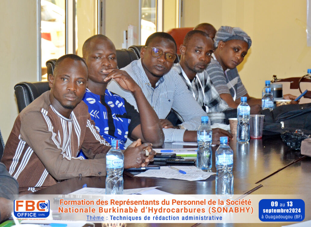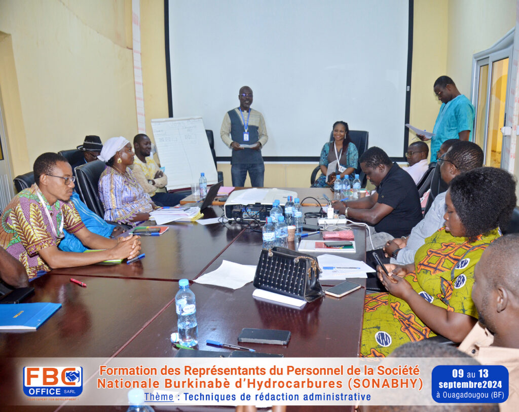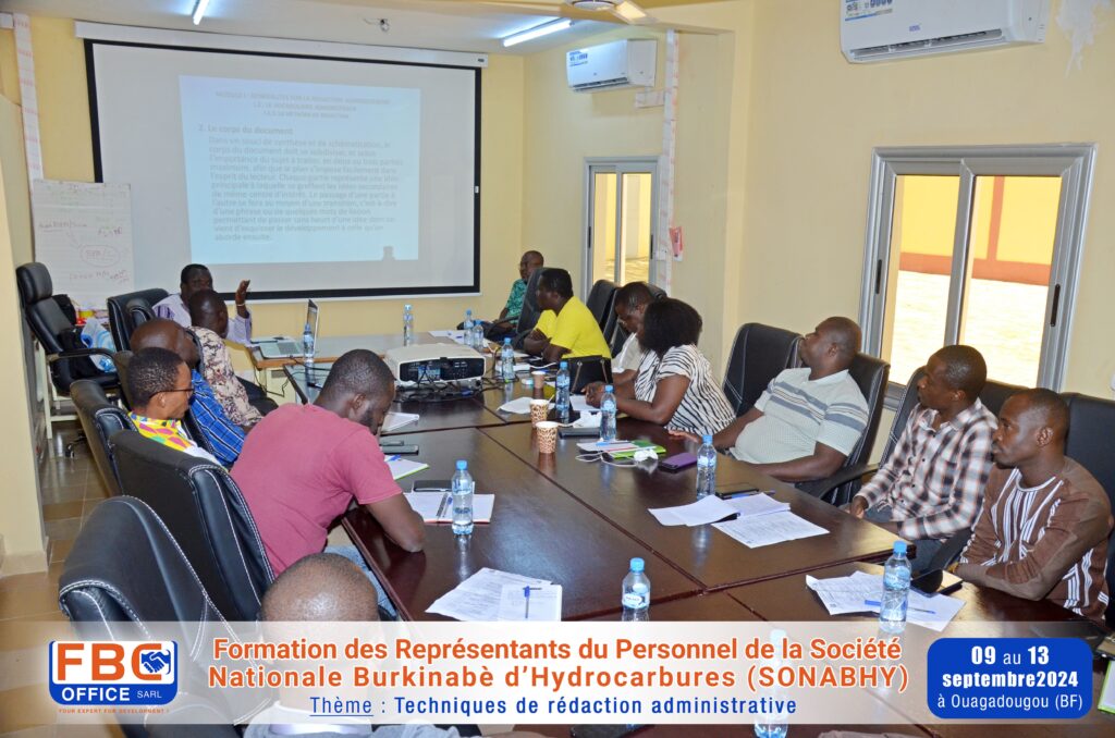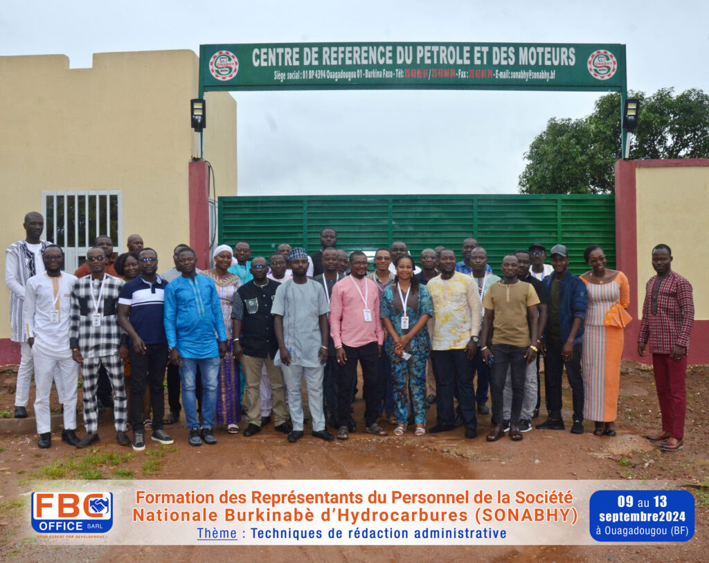 Formation sur les « Techniques de rédaction administrative » réalisée du 09 au 13 septembre 2024 à Ouagadougou au Burkina Faso, au profit des Représentants du Personnel de la Société Nationale Burkinabè d’Hydrocarbures (SONABHY).