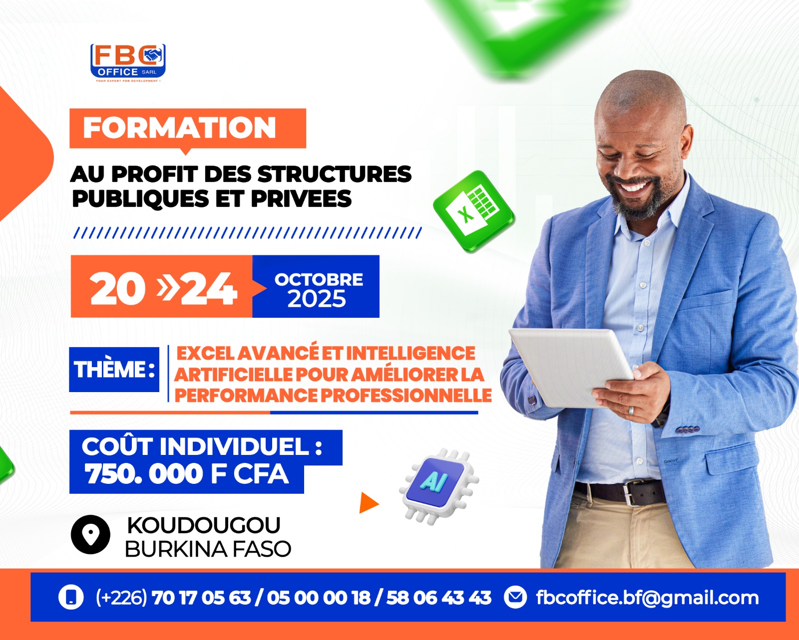 • Renforcer les compétences des participants dans l’usage du logiciel Excel et de l’IA (Intelligence Artificielle) afin d’améliorer leurs performances pour une innovation et une compétitivité réussie dans leurs domaines d’activité respectifs.