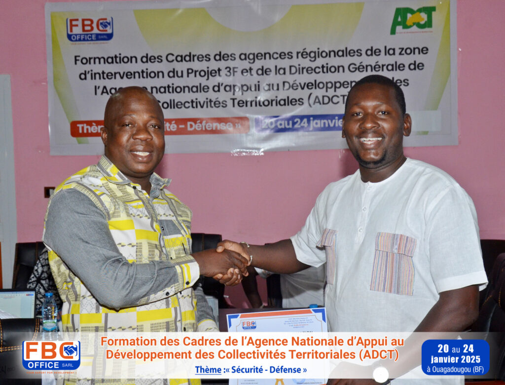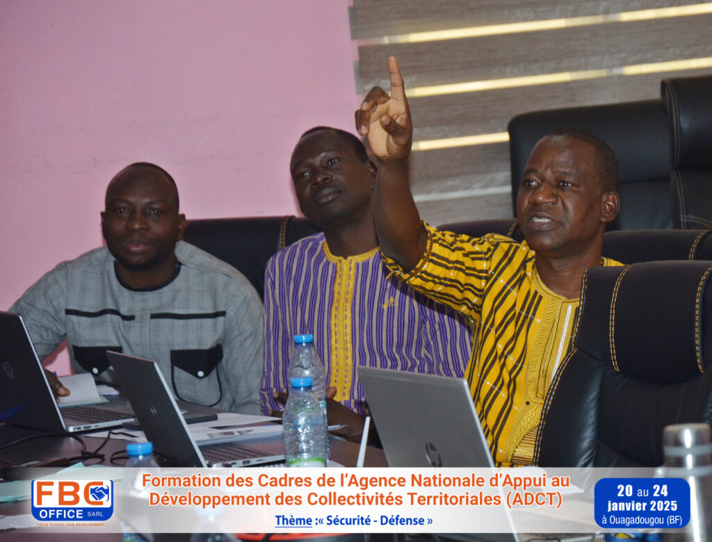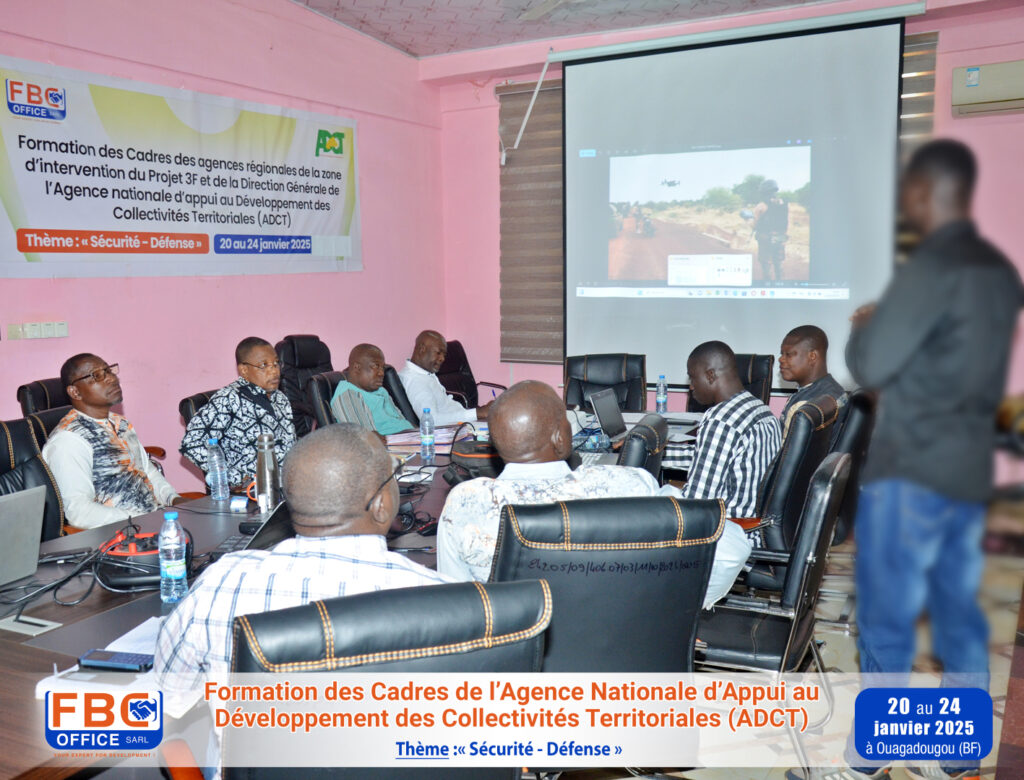 Formation en « Sécurité – Défense », tenue du 20 au 24 janvier 2025 à Ouagadougou au profit des Cadres des agences régionales de la zone d’intervention du Projet 3Frontières et de la Direction Générale de l’Agence nationale d’appui au Développement des Collectivités Territoriales (ADCT) du Burkina Faso.