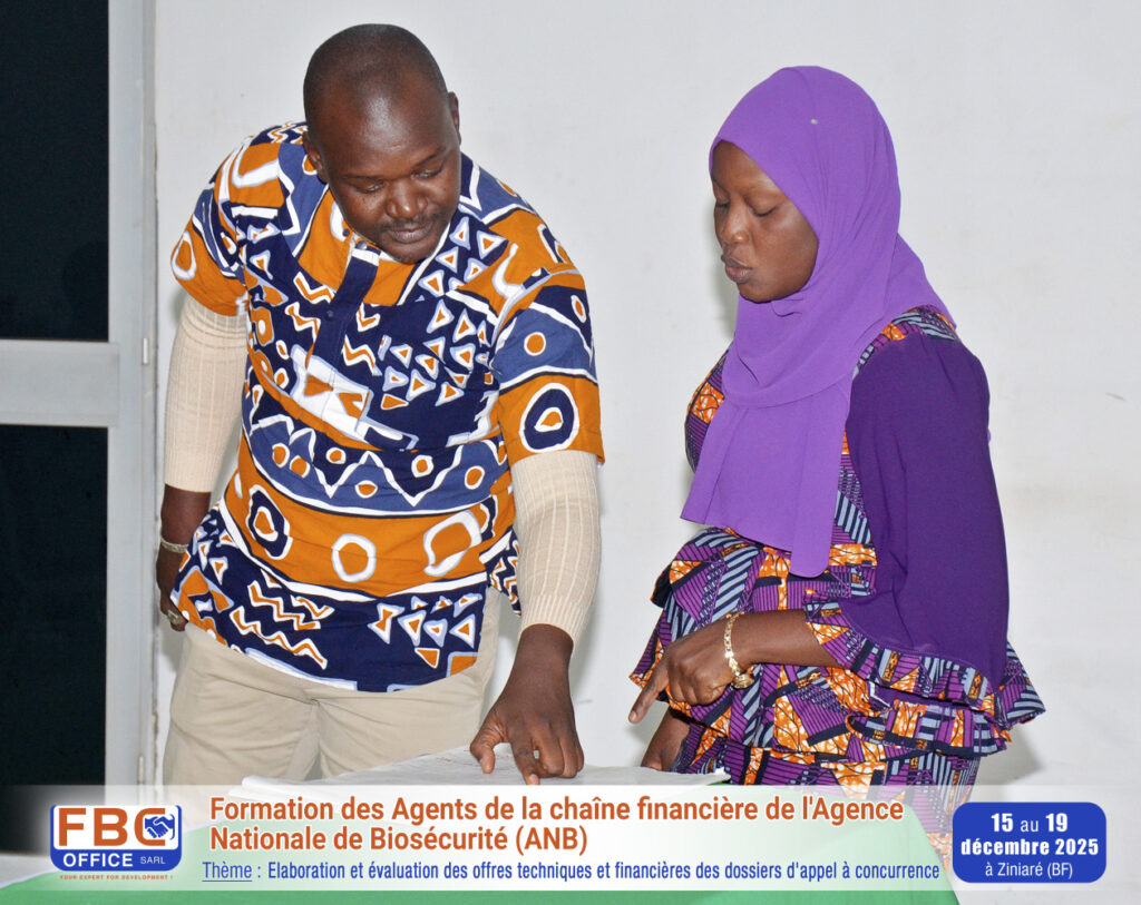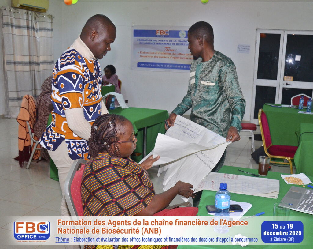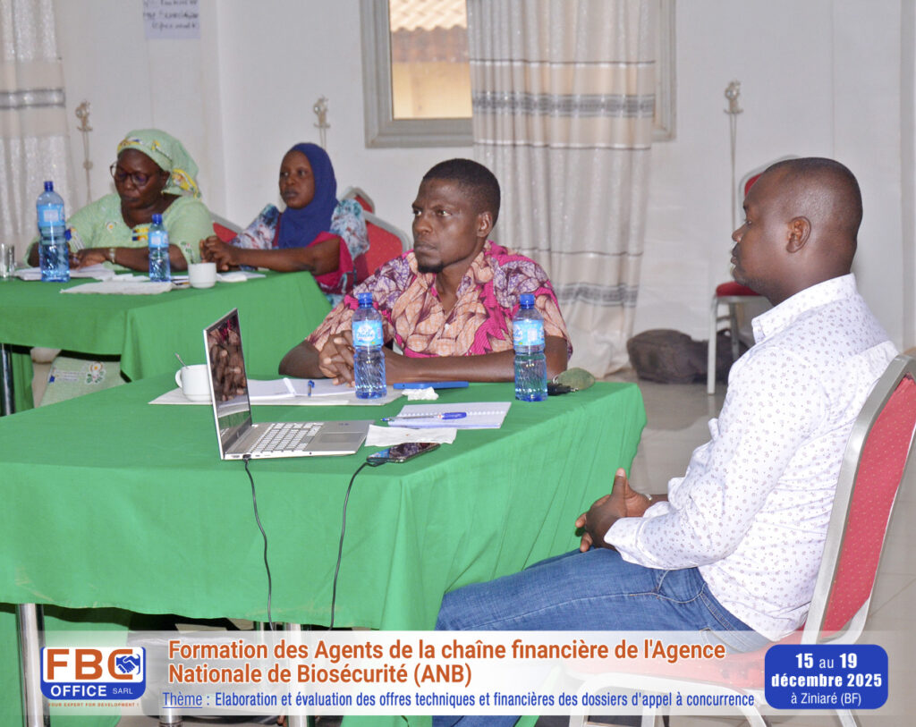 Du 15 au 19 décembre 2025 s’est tenue à Ziniaré au Burkina Faso, la formation des agents de la chaîne financière de l’Agence Nationale de Biosécurité, sur le thème : « Elaboration et évaluation des offres techniques et financières des dossiers d’appel a concurrence ».